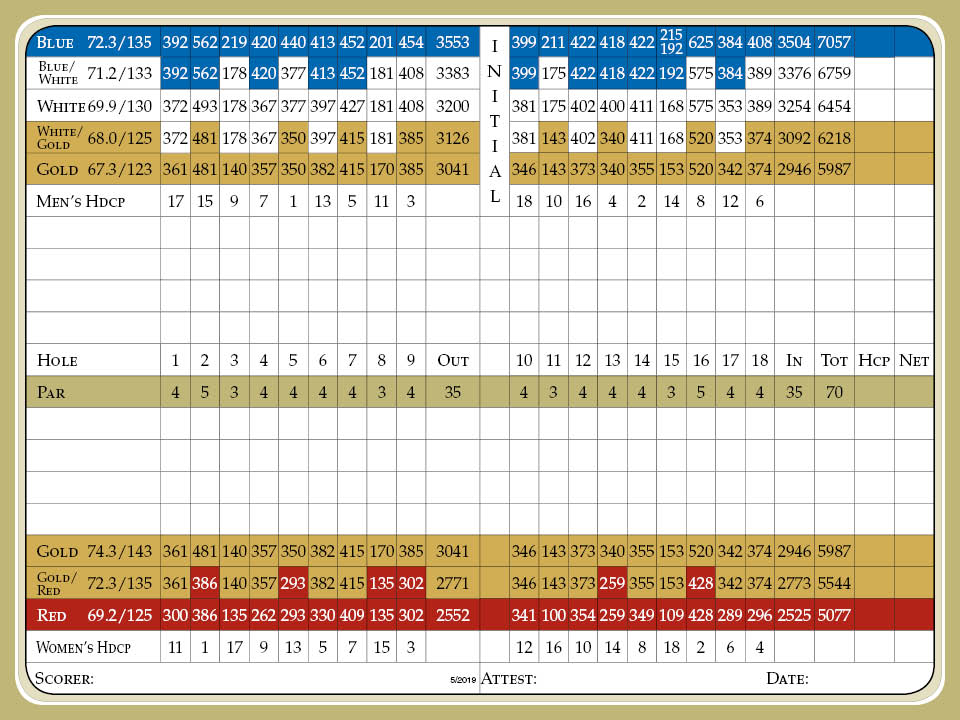 Long and narrow par 5 that asks for all you can give your 2nd shot. Deceptive bunker right appears greenside but is actually well short.
